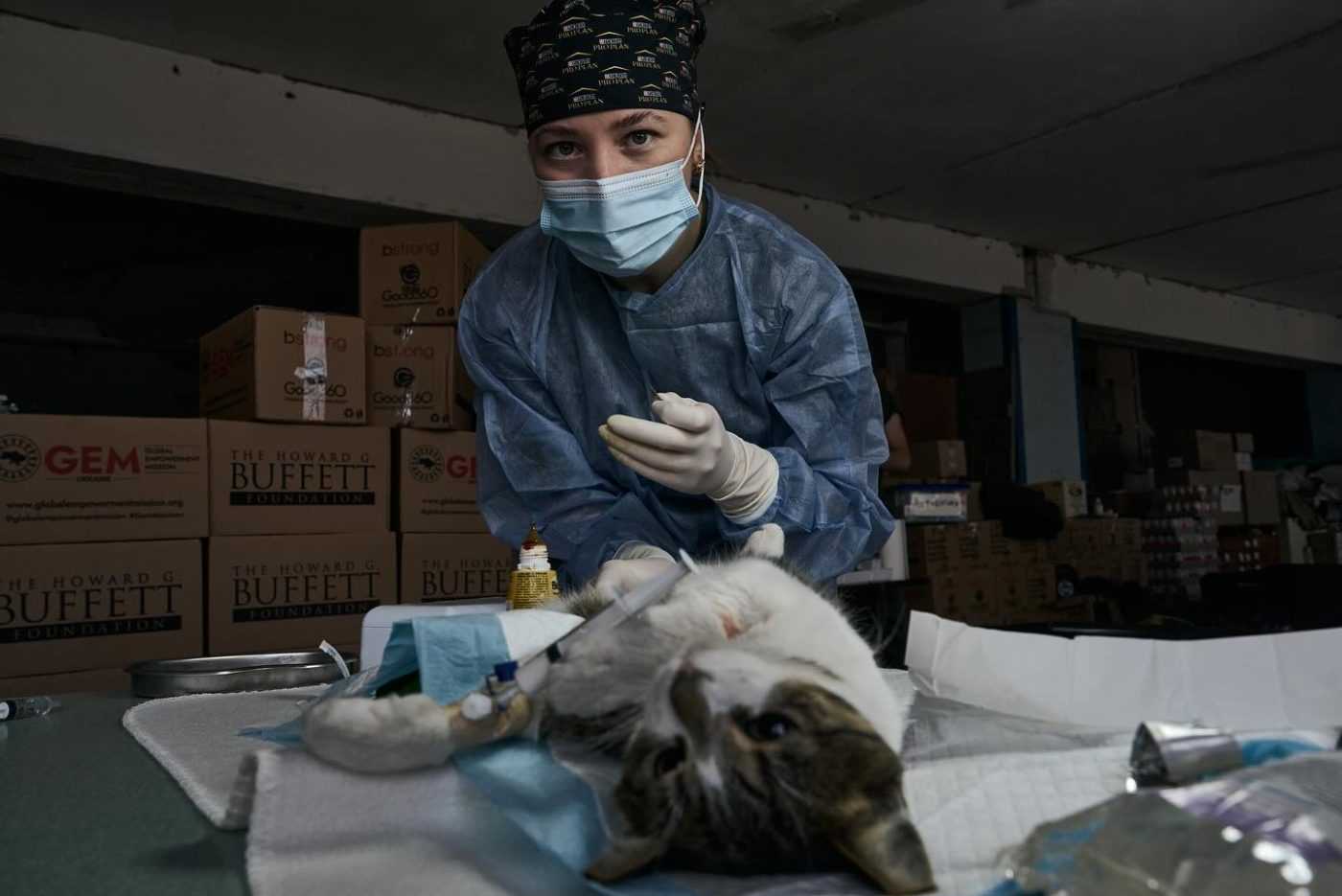 Коли люди дізнаються, що до них нарешті приїдуть ветеринари, то вишиковуються в черги. У побитих осколками приміщеннях волонтери обладнують операційні, роблять медичний огляд, щеплення та стерилізацію тварин. А опісля ще й роздають власникам сотні кілограмів корму.