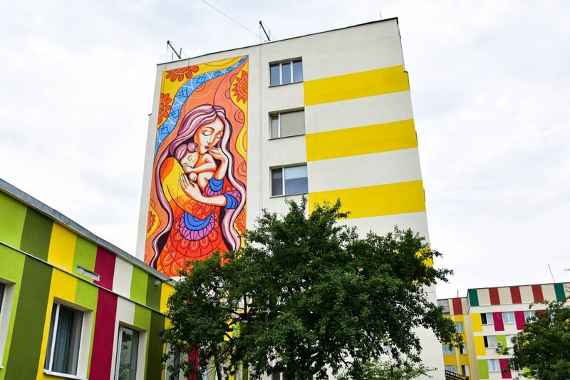 У Чернігові на стіні оновленого пологового будинку з’явився яскравий мурал. Його завершив малювати відомий графіті-художник Дмитро Адеріхо, повідомили у міськраді.