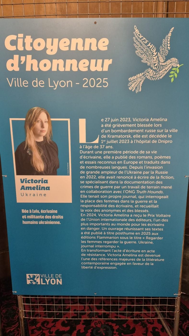 Мерія французького міста Ліон посмертно присвоїла статус почесної громадянки українській письменниці та правозахисниці Вікторії Амеліній.