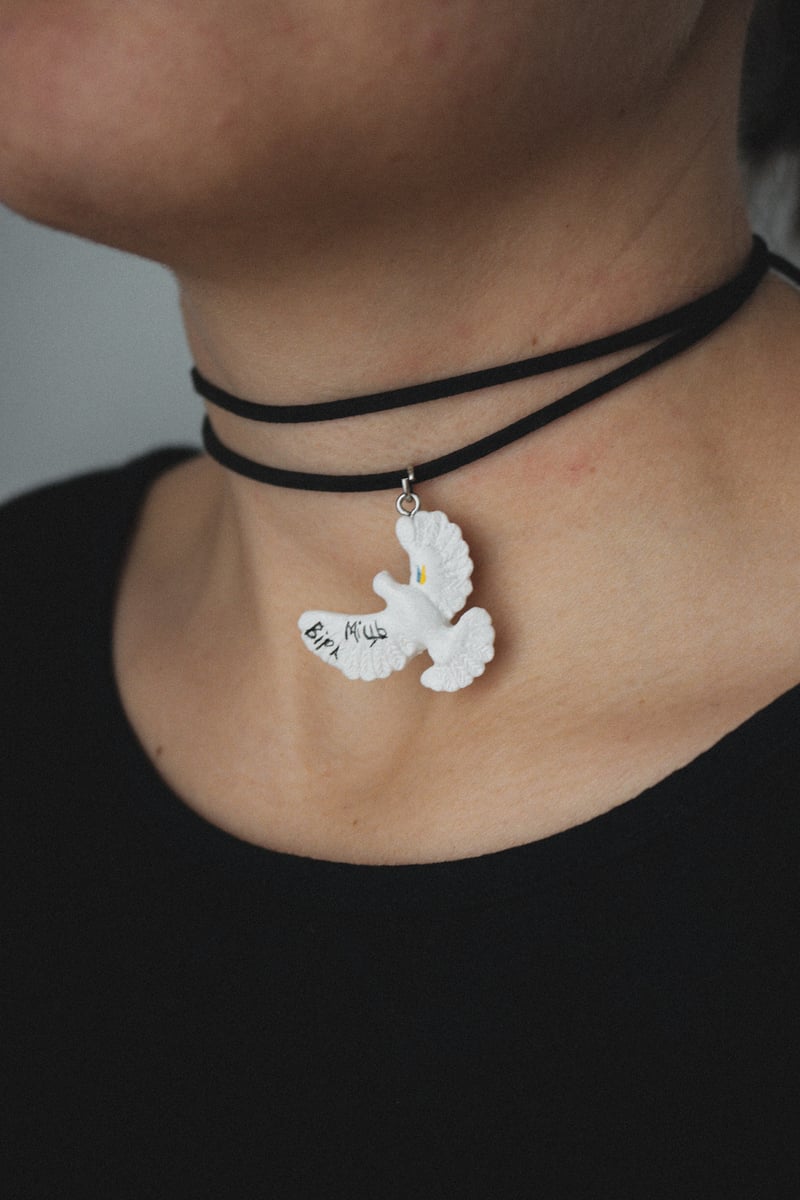 Так ми вигадали додавати до виробів шарпики — маленькі кулончики у вигляді серденьок чи гербів. Тепер, коли людина замовляє голубку, вона отримує ще одну прикрасу, яку також може носити з чокером.