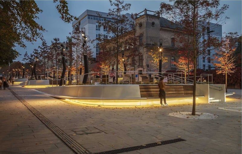 Також зроблене архітектурне освітлення, висаджено близько сотні двадцятирічних дубів та понад 6 тис. кущів. До речі, міжнародна архітектурна спільнота не вперше відзначає проєкти, реалізовані у Дніпрі.