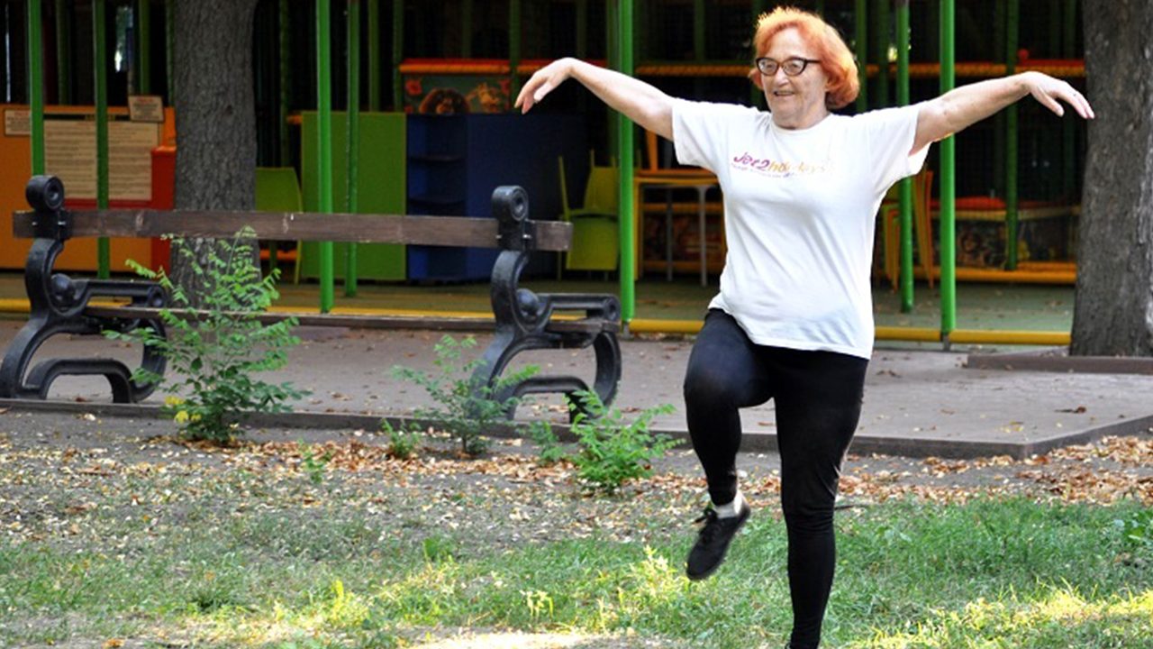 75-літня Світлана Ракітіна вже кілька років, незалежно від пори року, щоранку у міському парку Кропивницького чекає на тренування своїх учениць.