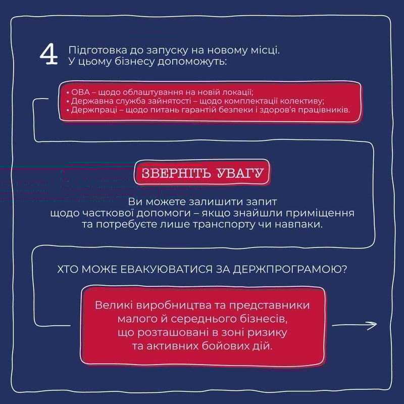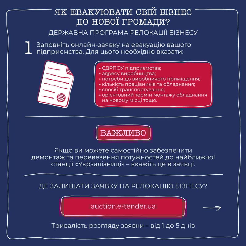 І маленьке підприємство, і потужне виробництво – евакуювати свій бізнес просто, коли маєш чіткий алгоритм дій. Ба більше, держава допоможе не лише перевезти все обладнання, а й підшукати приміщення для відновлення роботи.