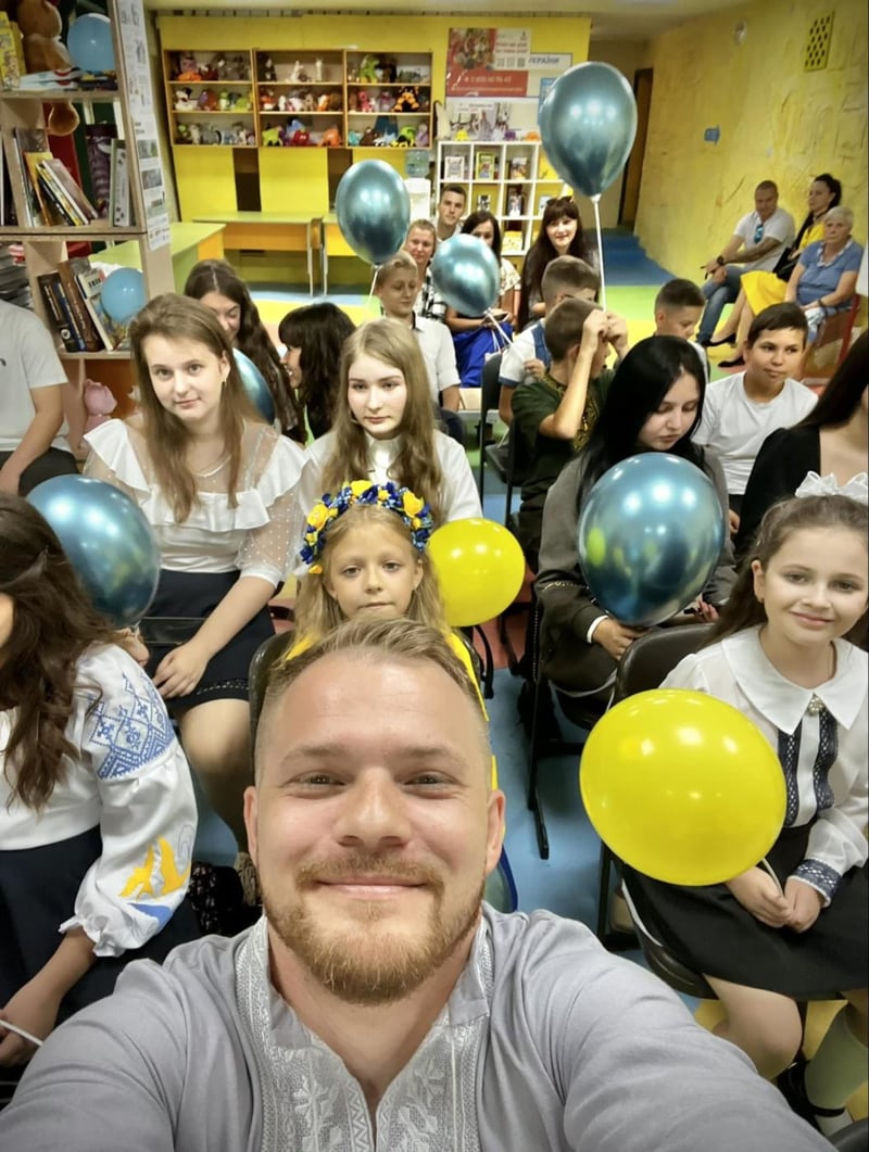 Михайло Лемак у школі в одній з громад Херсонщини. Фото надав Михайло