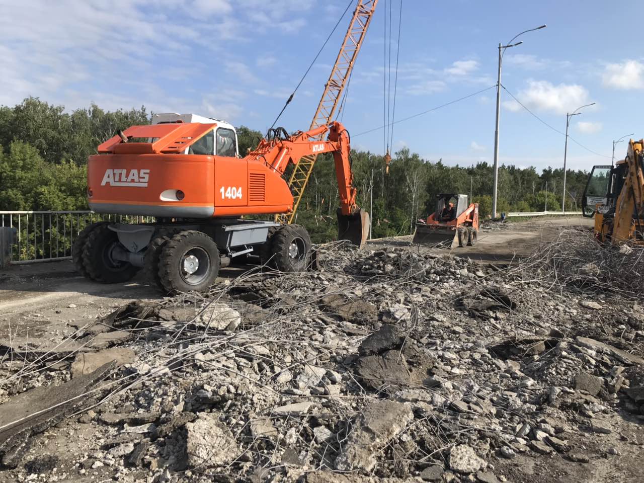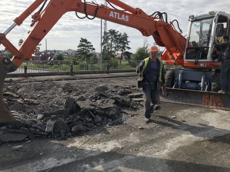 Як повідомляють дорожники, тривають роботи з фрезерування асфальтобетонного покриття та розбирання мостового полотна, також ведуться роботи з встановлення бортового каменя на підходах до мосту.