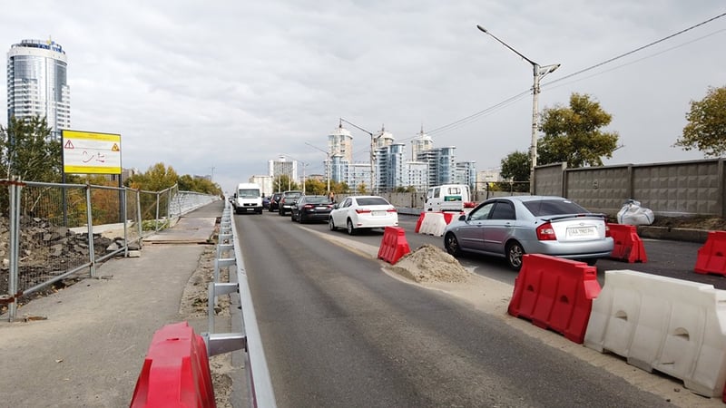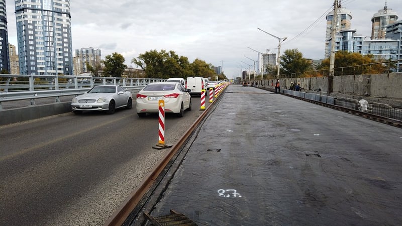 У Києві тривають ремонтні роботи на мосту Метро через Русанівську протоку. Ремонт проїжджої частини мосту в напрямку центру Києва було завершено у липні, потім стартував на другій стороні.