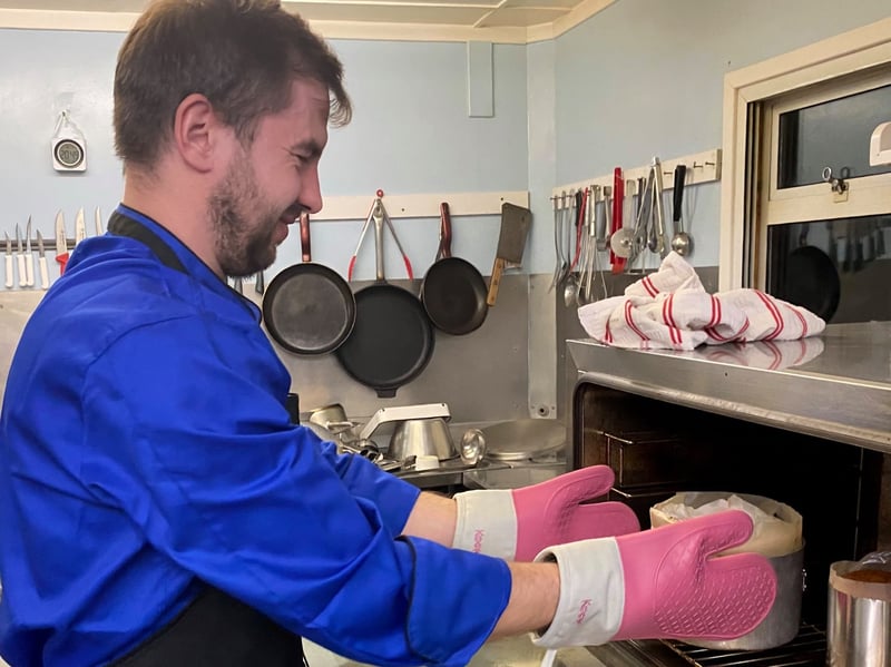 Під керівництвом кухаря Артема Ігнатенка полярники спільно готували урочистий обід з крашанками, холодцем, домашньою ковбасою.