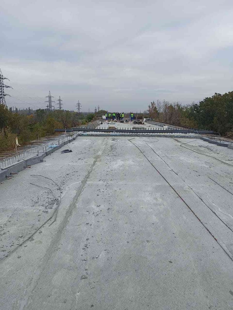 Зазначається, що дорожні роботи не припиняються ні на день. Зусилля зосереджені на в’язанні армокаркасу, ремонті та захисті колон.
