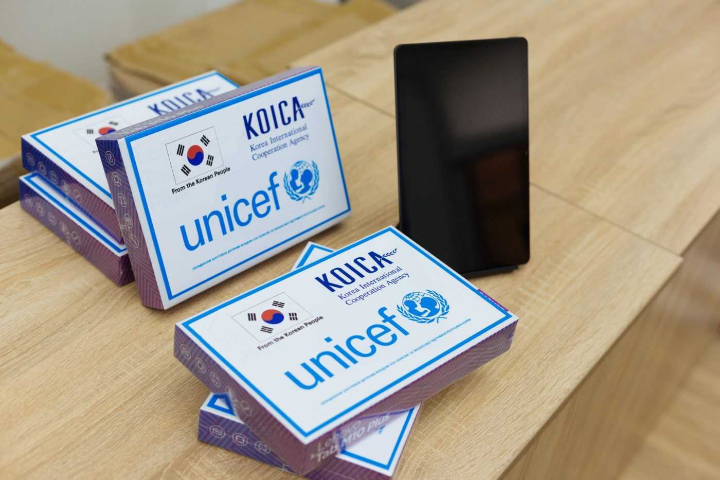 Зазначається, що фонд Юнісеф за підтримки ЄС та Республіки Корея доставив 5 000 планшетів для учнів молодшої школи. Cтільки ж ноутбуків отримають діти середнього та старшого шкільного віку.