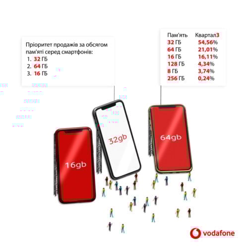 До кожного третього смартфона докуповують карту пам’яті. Найчастіше обирають карту пам’яті так само з обсягом 32 ГБ.