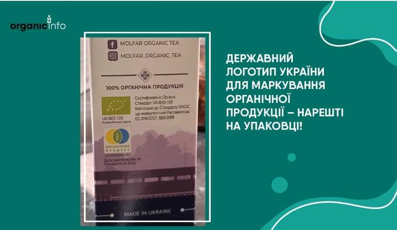 Державним логотипом України для органічної продукції промаркували перший продукт. Таким продуктом став органічний карпатський трав’яний чай від ТОВ «Мольфар Еко», який вже пропонує у своїх потягах Укрзалізниця.