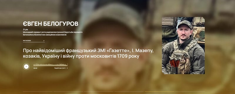 На сайті опубліковано шість аудіофрагментів, записаних українськими військовими. Вони зачитують уривки зі статей ініціативи та закликають ознайомитися з повним текстом. Наприклад, молодший сержант Віктор Пекар записав розповідь про битву під Оршею 1514 року, а молодший сержант Євген Белогуров — про висвітлення Івана Мазепи у французькій газеті Gazette початку XVIII сторіччя.