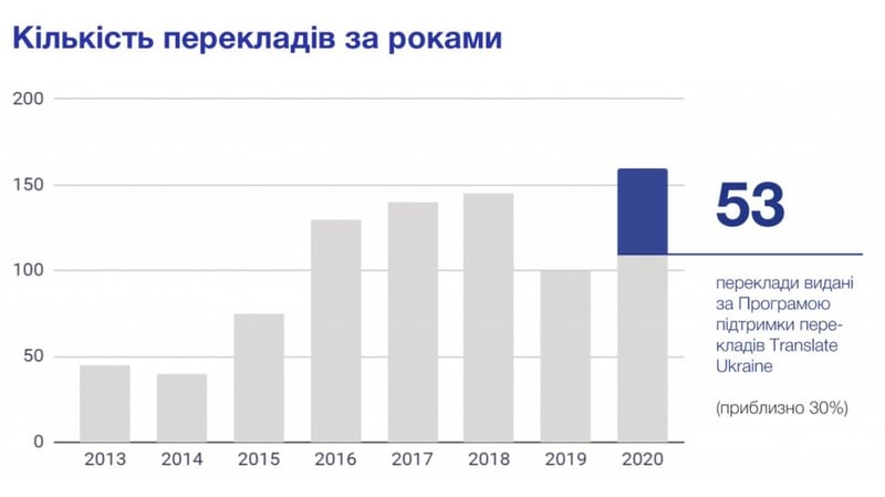 Із 2013 до 2020 року кількість перекладених за кордоном українських книжок зросла від 48 до 153 назв.