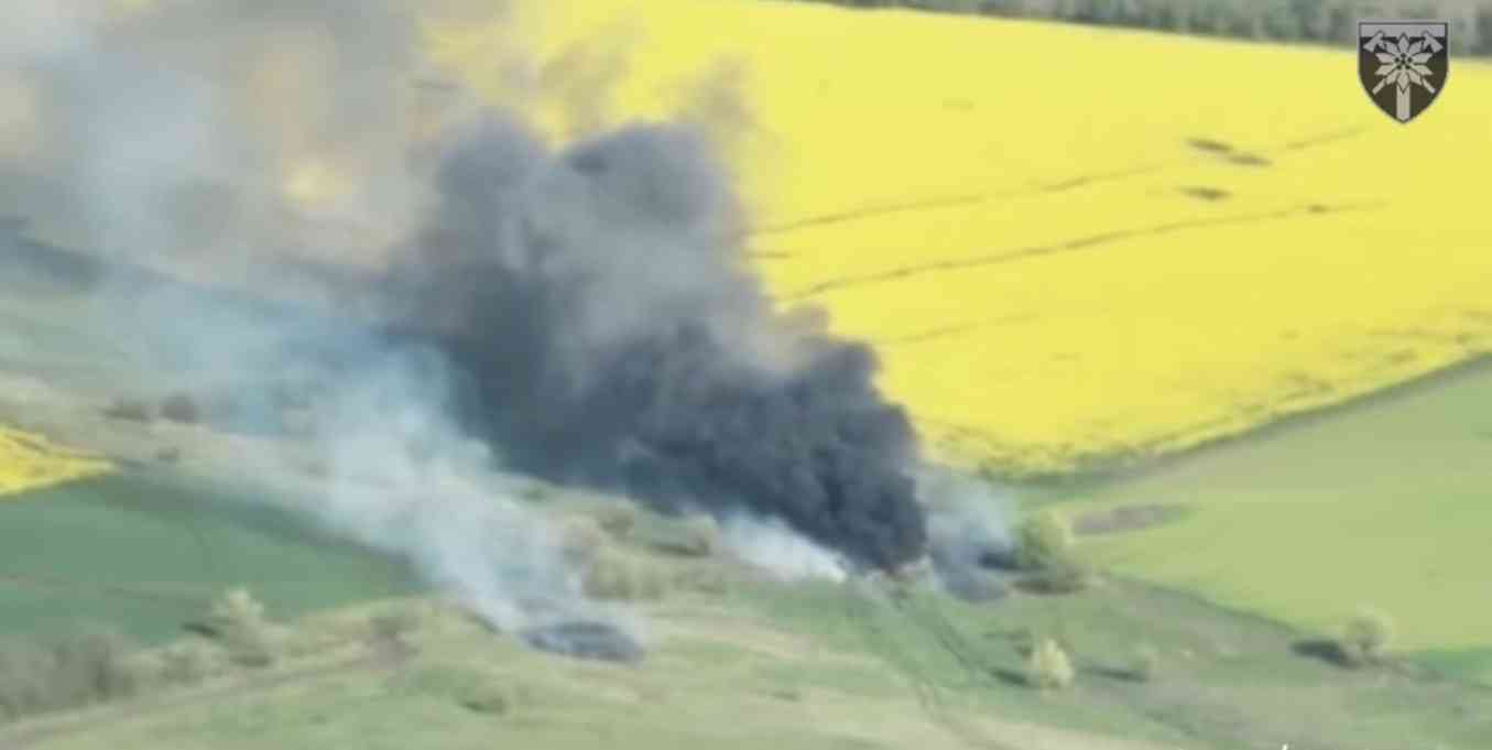 Від розгрому мінометної секції ворога піднявся густий чорний дим. Це зафіксував на відео безпілотник.