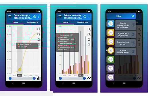 – поширення скріншотів із візуалізованою офіційною державною статистичною інформацією через месенджери та соціальні мережі.Додаток працює на ОС Android і безкоштовно доступний для завантаження на Google Play.