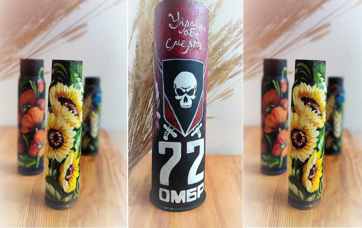 Також розпис гільз, тубусів, ящиків від боєкомплектів, касок – це можливість заробити грошей для ЗСУ.