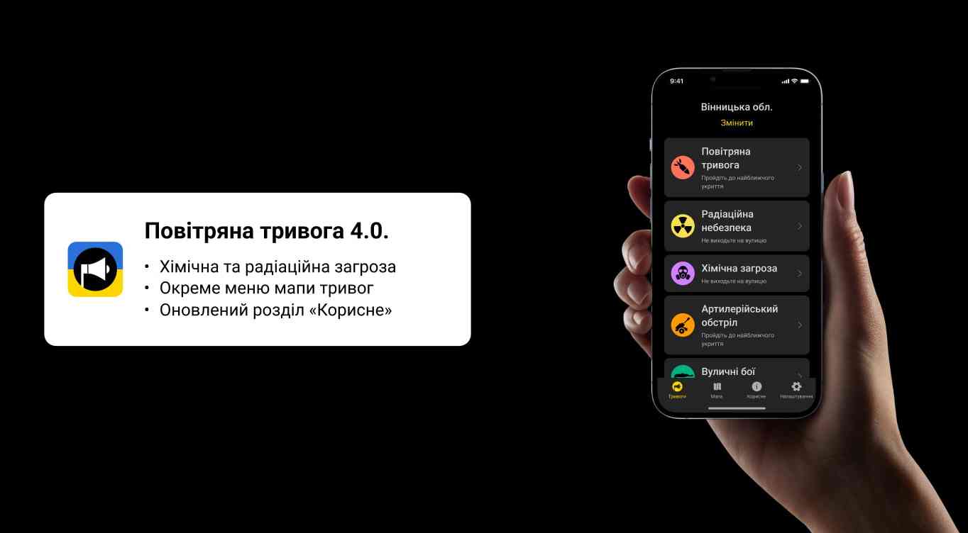 У застосунок «Повітряна тривога» з’явилися нові функції: він попереджатиме користувачів про хімічну та радіаційну небезпеки.
