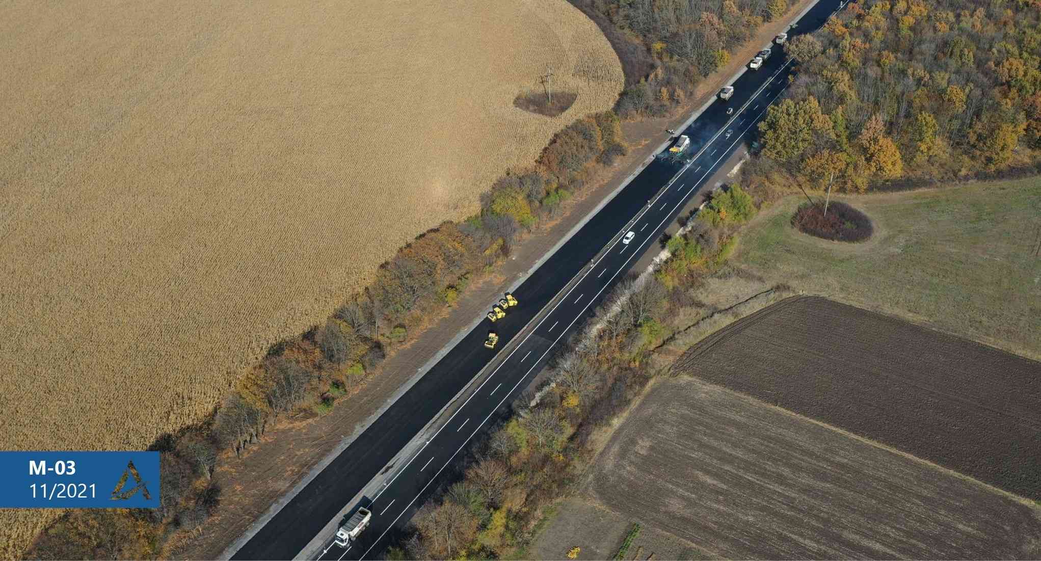 Зазначається, що реконструкція 25-кілометрової ділянки дороги М-03 «Київ – Харків – Довжанський» (Полтавський напрямок) завершена на 88,6%.