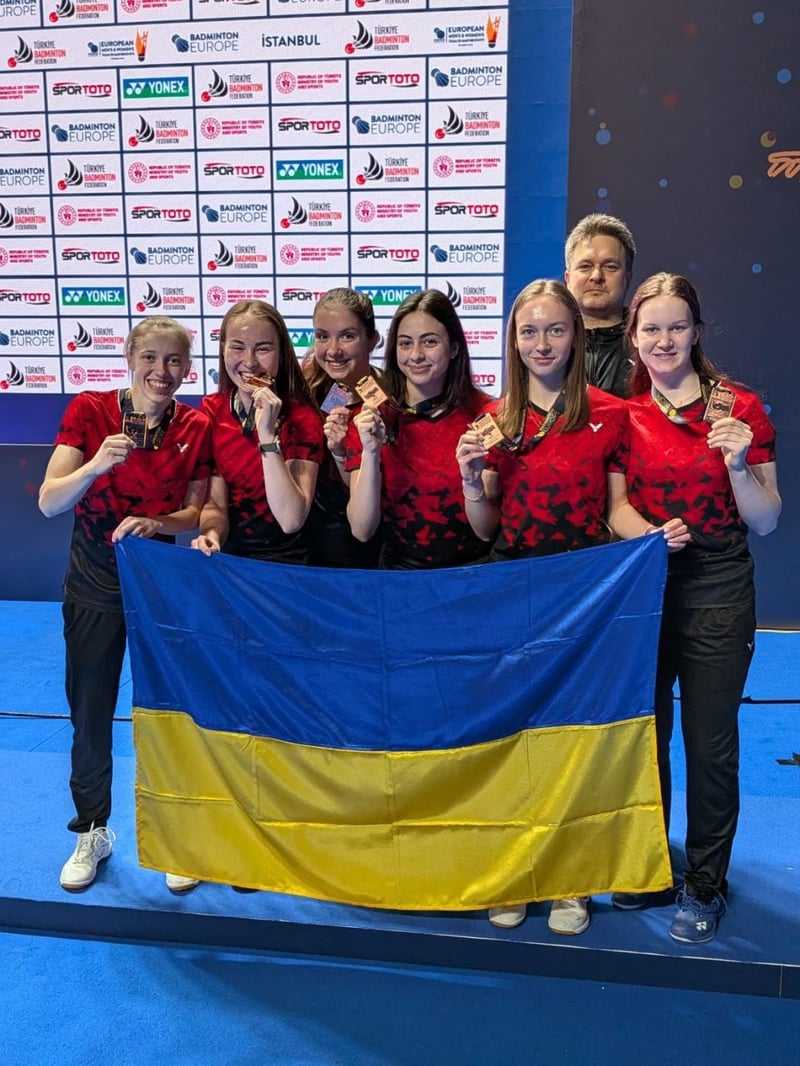 Жіноча збірна України посіла третє місце на командному чемпіонаті Європи з бадмінтону, що завершився у Стамбулі. Це перша нагорода такого рівня в історії українського бадмінтону на дорослих континентальних першостях.