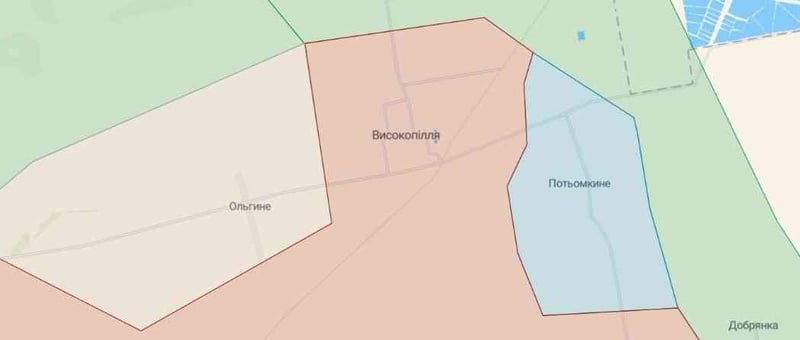 «Там два тижні дуже складна ситуація для російських військ. Ми обійшли їх справа і зліва. Ми взяли частково Ольгине і майже повністю Потьомкине. Це два населені пункти справа і зліва від Високопілля. … Понад тисяча бійців із озброєнням і військовою технікою перебувають в тактичному оточенні. Вчора була спроба прориву їх звідти. Була припинена нашим вогнем. Вони повернулися назад і перебувають на три чверті в оточенні з вогневим контролем виходу», — сказав Арестович.
