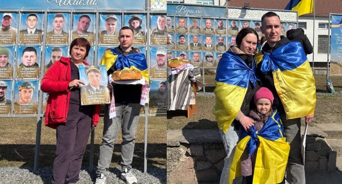 У місті Ізяслав на Хмельниччині колишній військовополонений офіцер Василь Ткачук власноруч зняв свій портрет з банера, де розміщені фотографії полонених та зниклих безвісти військових.